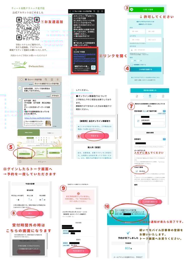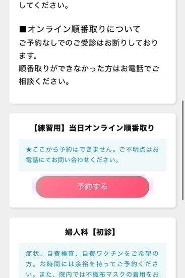 新予約システムのご案内【アポクル】 当院公式LINEからご予約いただけます。 現在、皆様に試していただけるよう練習用の予約枠を開放しておりますので、ぜひ一度お試しください。 公式LINE 🔍️ウィート女性クリニック北千住 @wheatclinic 詳細は下記ご確認ください。 アポクルに関するご質問は下記サイト参考ください。 https://medical.apokul.jp/user/faq tagPlaceholderカテゴリ: